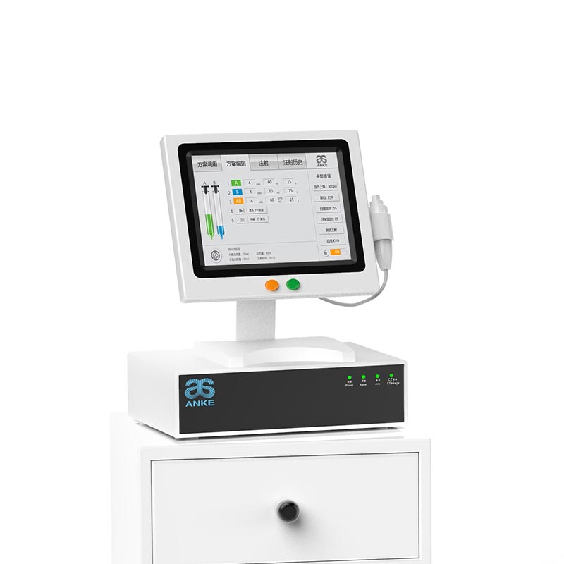 At present, CT enhancement and CT angiography have been widely applied in radiological diagnosis. The ASA-300P high-pressure syringe is a CT high-pressure syringe. The KASA-300P high-pressure syringe is composed of a double-tube injection head, a floor-standing stand, a remote control touch screen, an electrical control box, and system software. The head is compact in design, the body is flexible in design, and the operation is simple and safe. It features an intuitive operation interface and multiple injection protocols built-in, ensuring that users can easily complete the Settings while ensuring the safety of the patient's injection. It precisely controls the injection rhythm to ensure a stable and clear CT enhanced imaging effect. Whether it is adult CT enhanced examination, children CT enhanced examination, or angiography surgery, it can be easily adapted to.