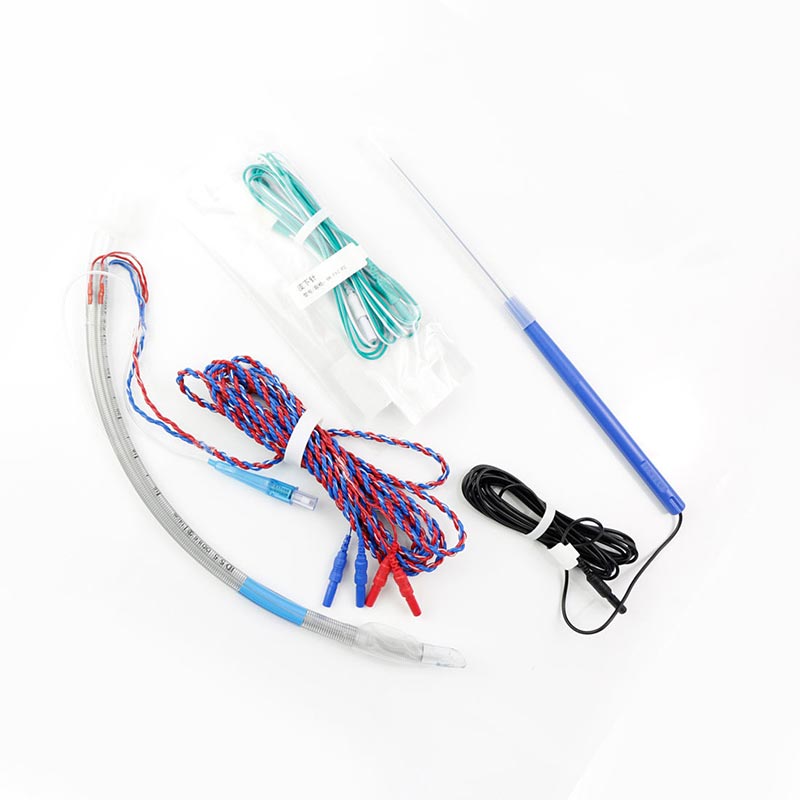 HTSY® quality Electromyogram Tracheal Tube made of high quality medical grade PVC temperature sensitive and high elastic material,free of DEHP,the hardness of the tube is relatively reduced after entering the human body,and it has good biocompatibility. High-volume low-pressure ultra-thin cufe is soft and comfortable, reduces the pressure on the Trachea and reduces the damage to the Respiratory Mucosa. It is used to connect with a suitable neural monitor, rovide a clear ventilation airway for patients and serve as a tol for monitoring intraoperative muscle and nerve activity in the larvnx. The hidden electrode groove is designed to make the tube body smoother; the intubation operation is used to reduce friction damage; the electrode connection part is easier to contact and shorten the operation time. Increase the model with probe.improve the eficiency of hospital procurement full-product packing design.easy to use The elastic design of the front end of the probe provides force feedback during contact during operation.